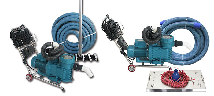 左圖為推桿式單人吸污機(jī),右圖為雙人操作繩拉式吸污機(jī)
