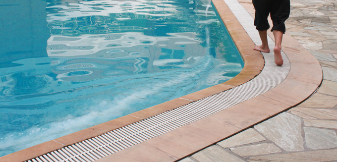 游泳池ABS防滑渠面格柵是作為游泳池四周排水溝的塑料蓋板,屬于游泳池工程配件的一種。也叫游泳池排水溝篦子。